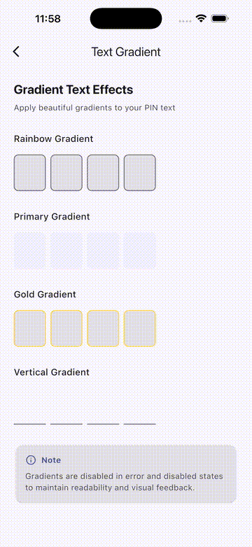 PinInputControllerfor text, focus, and error management - Multiple Shapes: Outlined, filled, underlined, and circle styles